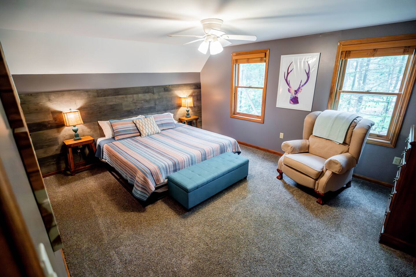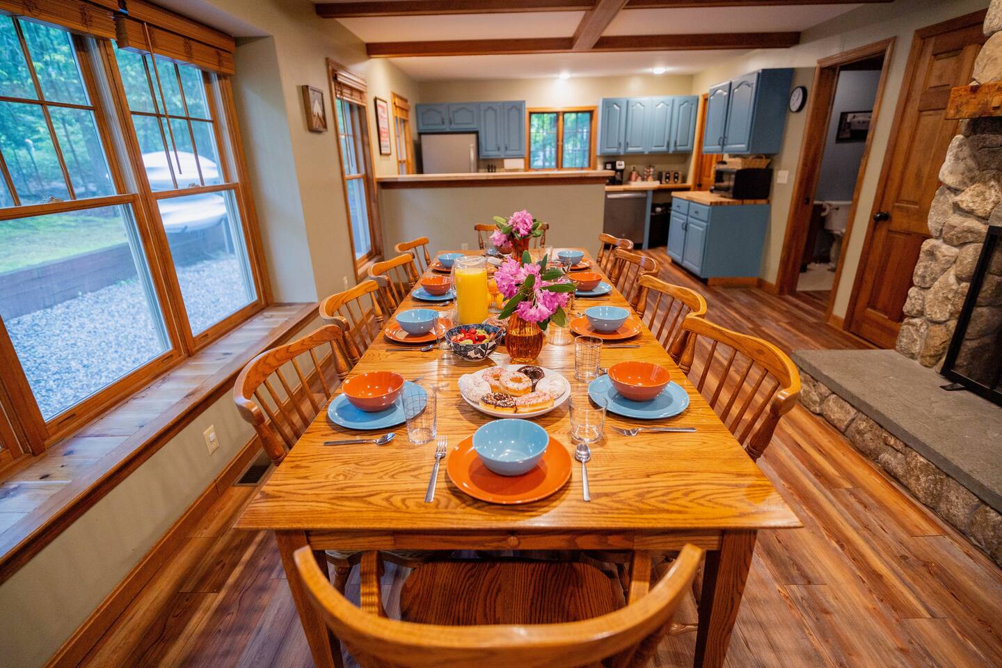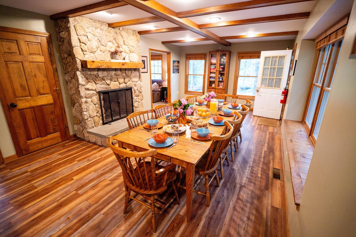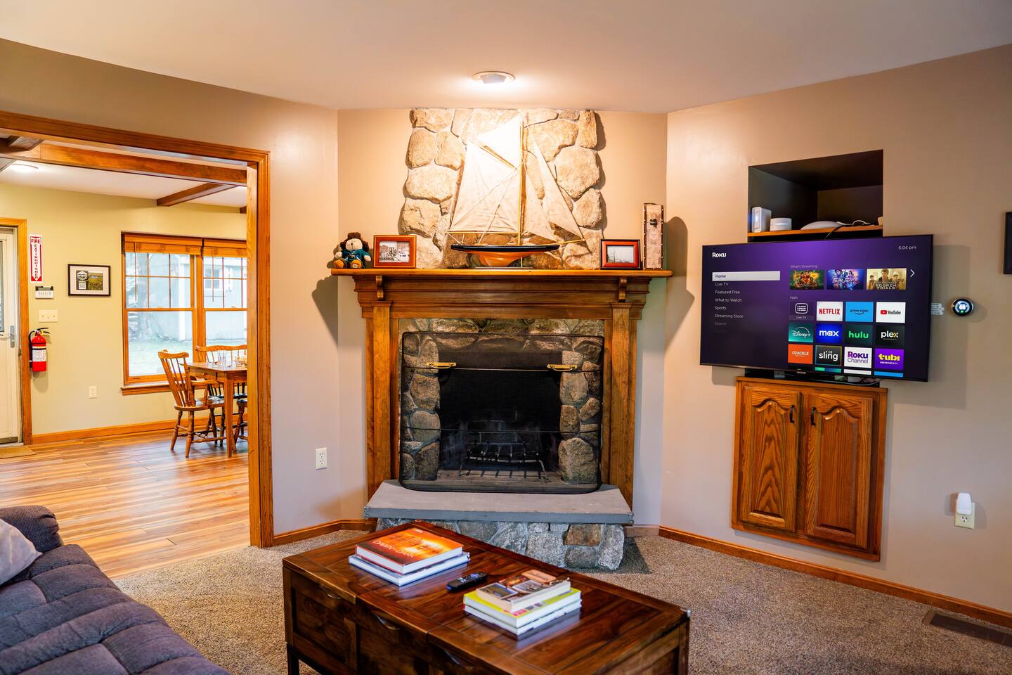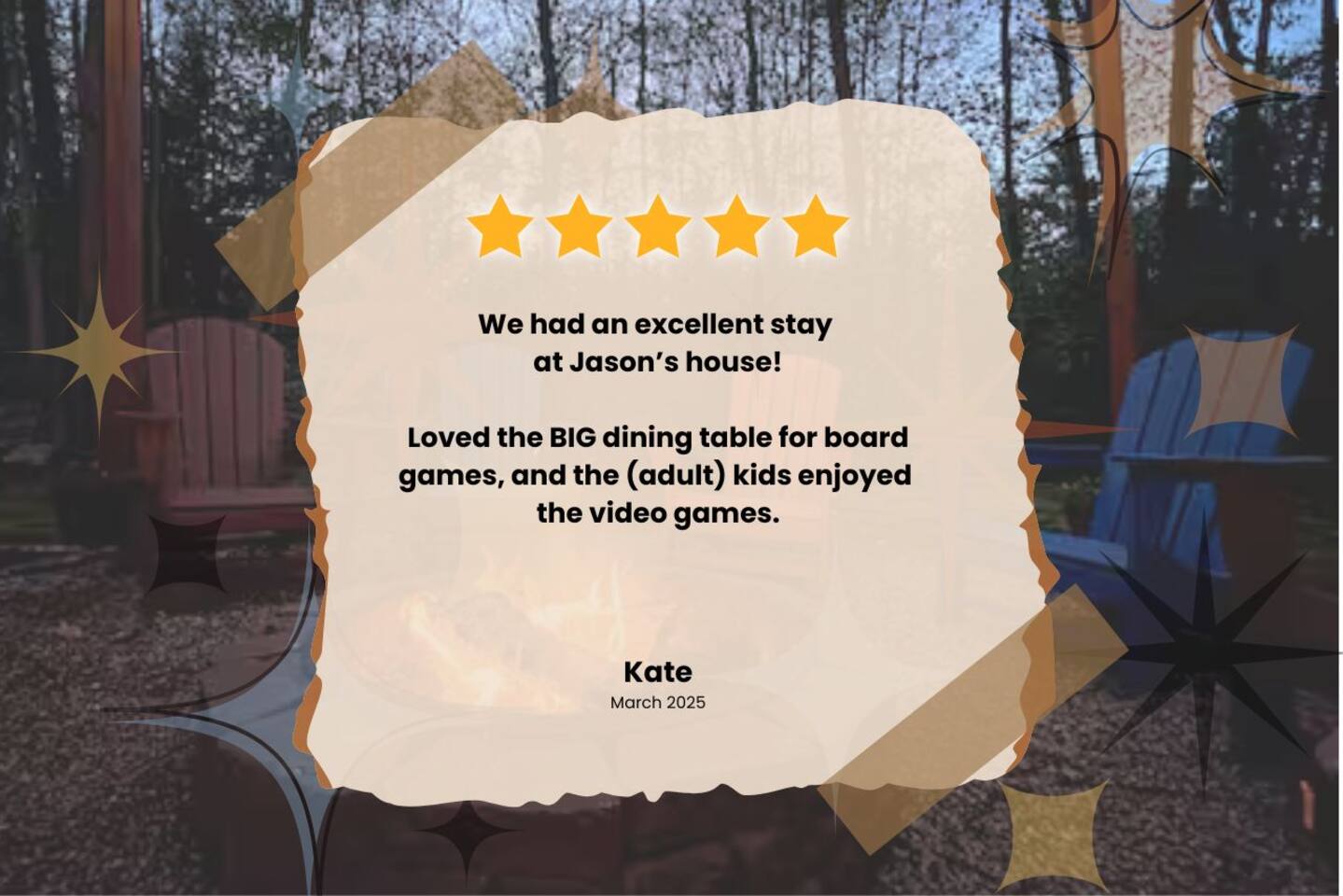 Tucked among the towering trees, Cape Guinevere at Baxter Lake provides the ideal getaway, whether you're enjoying fall foliage, a snowy winter, or summer sunshine. In the warmer months, enjoy the lake and vibrant greenery, perfect for outdoor adventures. During the winter, escape into a peaceful retreat as snow blankets the landscape, creating a cozy haven to unwind and reconnect with nature. (Please note - Airbnb AI might state that our home is "on the lake" - it is across the street)