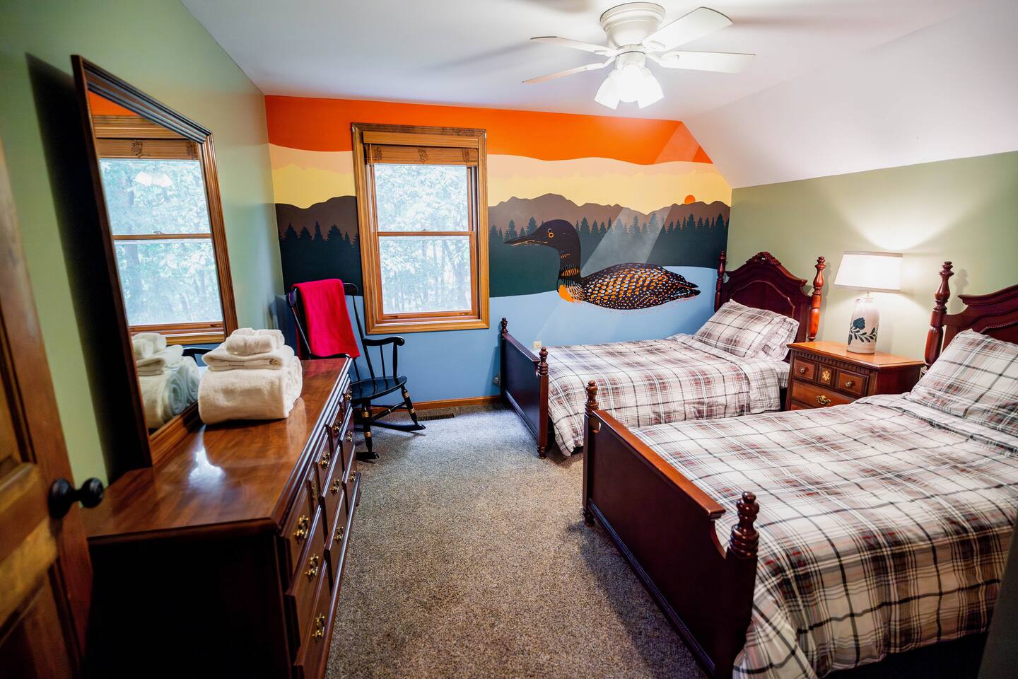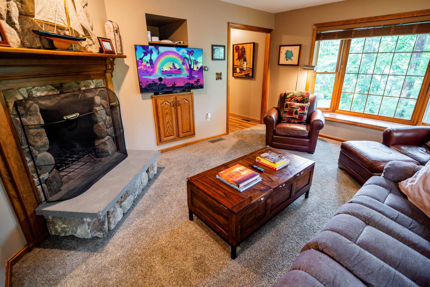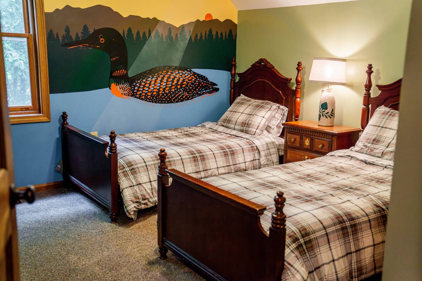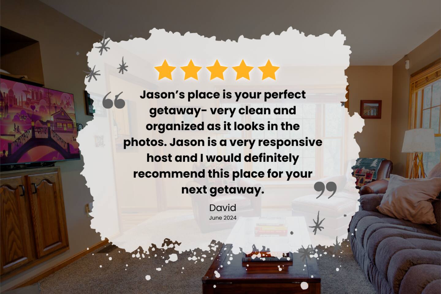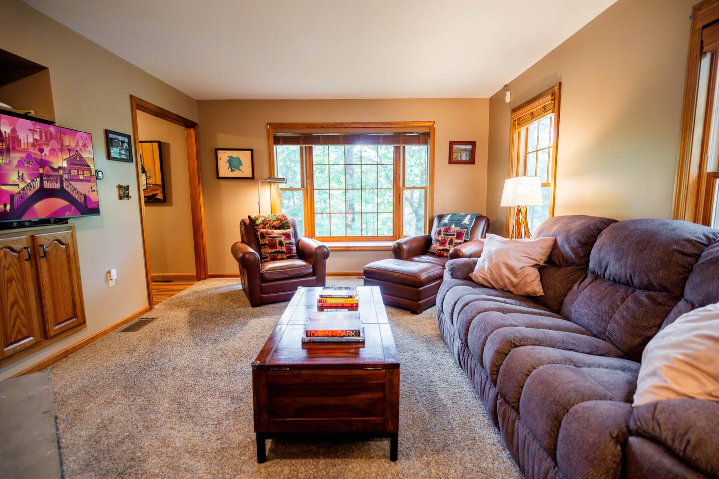 Tucked among the towering trees, Cape Guinevere at Baxter Lake provides the ideal getaway, whether you're enjoying fall foliage, a snowy winter, or summer sunshine. In the warmer months, enjoy the lake and vibrant greenery, perfect for outdoor adventures. During the winter, escape into a peaceful retreat as snow blankets the landscape, creating a cozy haven to unwind and reconnect with nature. (Please note - Airbnb AI might state that our home is "on the lake" - it is across the street)