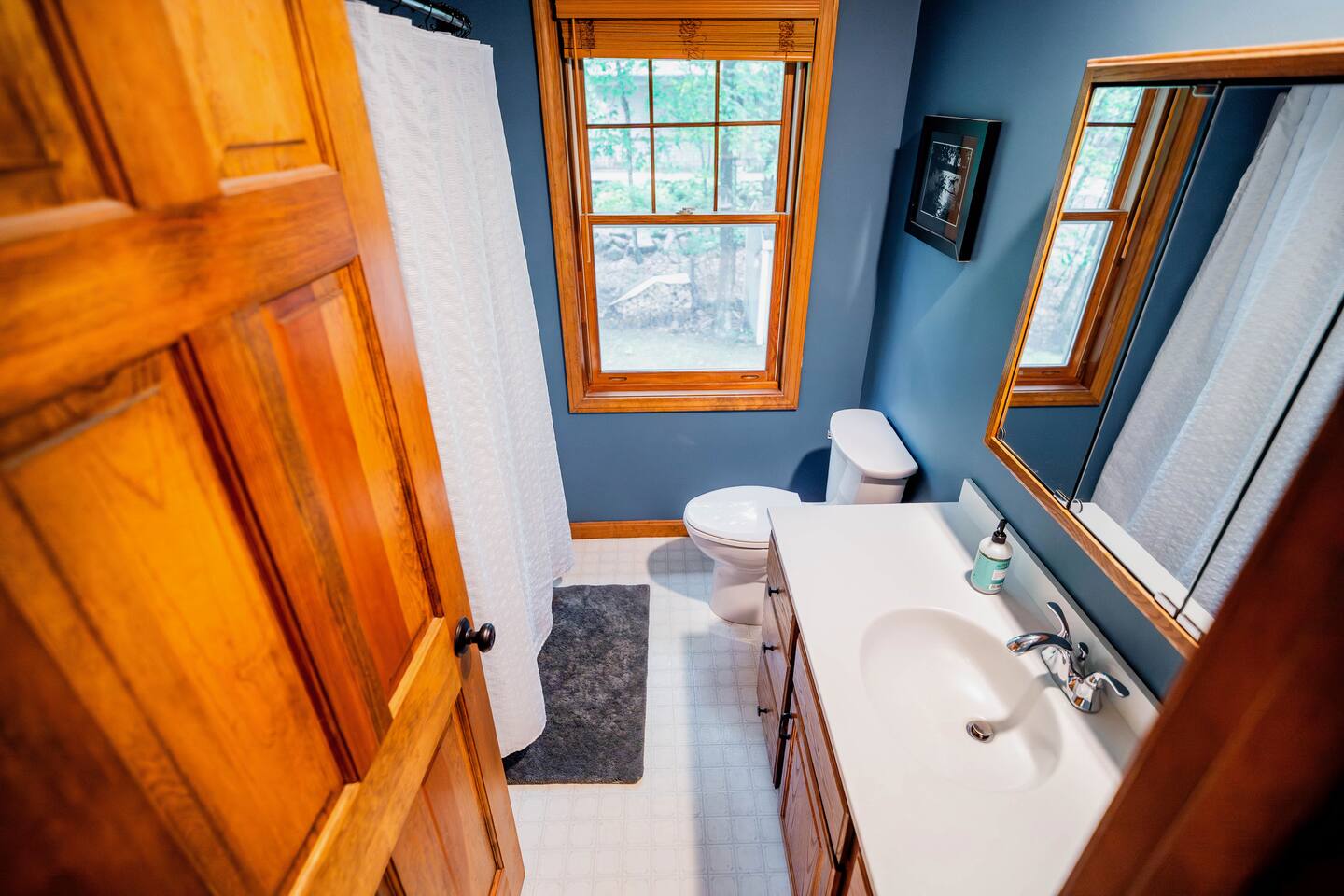 Whether you're seeking the sunny adventures of summer or the cozy tranquility of a snowy winter, Cape Guinevere offers a perfect escape. In the warmer months, enjoy long days by the lake, vibrant greenery, and outdoor fun. When winter arrives, immerse yourself in a serene wonderland where snow-covered landscapes invite relaxation and quiet reflection. Cape Guinevere is your year-round retreat into nature's beauty. KEY FEATURES: ☀ 4 Bedrooms: Upstairs - 1 King, 1 Queen, 2 Twins // Downstairs - 1 Queen ☀ 2.5 Bathrooms: Upstairs - 1 ensuite full bath, 1 full bath // Downstairs - 1 half bath ☀ Fully-equipped kitchen with ample utensils and kitchenware ☀ Spacious dining room that comfortably seats 10 ☀ Outdoor dining table for 6 ☀ Super fast WiFi ☀ 2,045 square feet of indoor living space ☀ Peaceful lakeside location ☀ Dog-friendly ☀ Wooded location on a half-acre plot ☀4-5 minute walk to Baxter Lake beachfront with boat launch ✮ 30 minutes to Portsmouth, Lake Winnipesaukee, and UNH Durham ✮ Under 60 minutes to Gunstock Mountain, Laconia, Kennebunkport, Wolfeboro, Concord, Ogunquit, York, Meredith, Hampton Beach, Manchester, and Newburyport HERE ARE A FEW KIND WORDS FROM OUR PREVIOUS GUESTS: “We had a wonderful stay at Jason's house. He was a fantastic host and the house had everything we could possibly need. We loved our time at Baxter Lake!” - Amber "Great stay. Jason was attentive, helpful, and great to work with. We enjoyed our stay very much! Home was great!” - Jacqueline "The perfect place for a family vacation. We enjoyed our stay very much and would warmly recommend it to others." - Amit "The house, and Jason were fantastic. Well recommended!" - Paul "My family and I had a wonderful long weekend. The house was absolutely perfect and Jason was a superb host! I would definitely stay here again!" - Kristina ✮✮ BEDROOMS ✮✮ Enjoy our four inviting bedrooms. Upstairs, a king-sized bed, a queen, and two twin beds provide peaceful haven for every member of your tribe. Meanwhile, the downstairs bedroom offers a spacious queen-sized bed, giving you a perfect blend of comfort and accessibility. Each room has been thoughtfully designed to accommodate the diverse preferences of families and groups, ensuring everyone enjoys a serene, restful night's sleep. All of our bedrooms have ceiling fans to help circulate air or help with white noise. ✮✮ KITCHEN, FAMILY ROOM, + DINING ✮✮ The heart of any group gathering or family retreat is often the kitchen, and Cape Guinevere's is thoughtfully equipped to be just that. It's fully stocked with plenty of pots, pans, and cooking implements, making meal preparation a breeze, even for larger groups. Whether you're whipping up a family-favorite recipe or experimenting with local produce, this kitchen turns every meal into a cherished memory. Our dining and living areas help create that sense of community we so deeply value. The dining table, comfortably seating 10, is not just for delicious meals - it's perfectly situated for engaging conversations, laugh-filled board games, challenging puzzles, and precious time spent with friends and family. Our living room is lovingly adorned with leather captain's chairs and a reclining sofa, creating a cozy environment that invites relaxation. Add to this our two wood-burning fireplaces, and you have a setting perfect for sharing stories, creating memories, or simply unwinding with a good book in the gentle, warm glow. ✮✮ BATHROOMS ✮✮ Upstairs, our two full bathrooms sport shower/tub combos - just what you need for easy kid bath times or a rejuvenating soak after a fun-filled day. Downstairs, a handy half-bath adds to the practicality, ensuring there's always a bathroom nearby for freshening up. ✮✮ OUTSIDE SPACE ✮✮ Our outdoor space at Cape Guinevere at Baxter Lake offers the perfect spot to relax and connect with family and friends. Enjoy a meal together at the patio dining table, cook dinner on the grill, and cozy up around the fire pit for warmth and conversation under a sky full of stars. Discover the beautiful local native flora and have fun exploring the lake on our two kayaks. Here, you'll find countless ways to create cherished memories with those who matter the most. ✮✮ DRIVEWAY AND PARKING ✮✮ You’re welcome to use the Upper Parking Area behind the house (crushed stone driveway) You may be able to fit up to 3 vehicles in tandem.The Upper Parking Area may be best for loading and unloading, but it may not be suitable for all cars. In the winter, ice and snow may prevent access to the Upper Parking Area. The Lower Parking Area to the right of the front staircase is for you to use. You should be able to comfortably park 3 vehicles there, and might be able to squeeze in a 4th. If you’re bringing vehicles on a trailer (snowmobile, motorcycles, a small boat), we recommend that you park the trailer here. ✮✮ PHOTO DISCLOSURE ✮✮ Please note that any food and flowers featured in our photos serve a staging purpose but are readily available at local stores, such as Hannaford and (a brand new and spacious) Market Basket, located just 10-15 minutes away in Rochester. ✮✮ Book Cape Guinevere Today ✮✮ Don't miss the chance to enjoy a relaxing stay by the lake at Cape Guinevere. Book your reservation today and let us provide you with a memorable lakeside getaway. Guest access Apart from the owner's closet, feel free to utilize every room in the house. We wholeheartedly encourage you to make yourself at home, creating wonderful memories during your stay. From the moment you arrive and take advantage of our hassle-free self-check-in, we invite you to savor every corner of our cozy home. The property is yours to enjoy! For your added convenience, we provide a washer and dryer, making your stay even more comfortable. Pet-Friendly Retreat: Cape Guinevere is a dog-friendly home! We welcome you and your furry companion, ensuring a memorable and enjoya