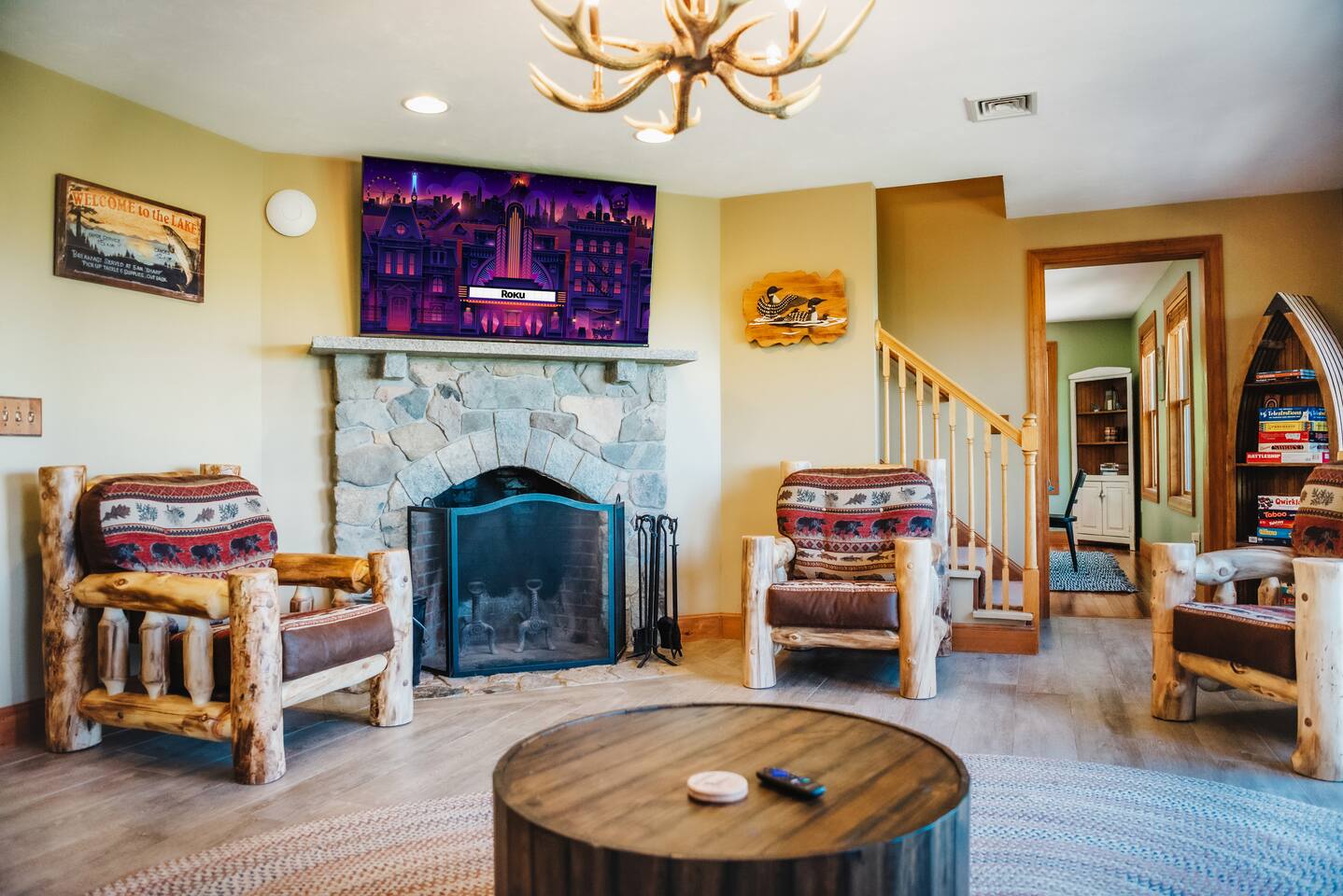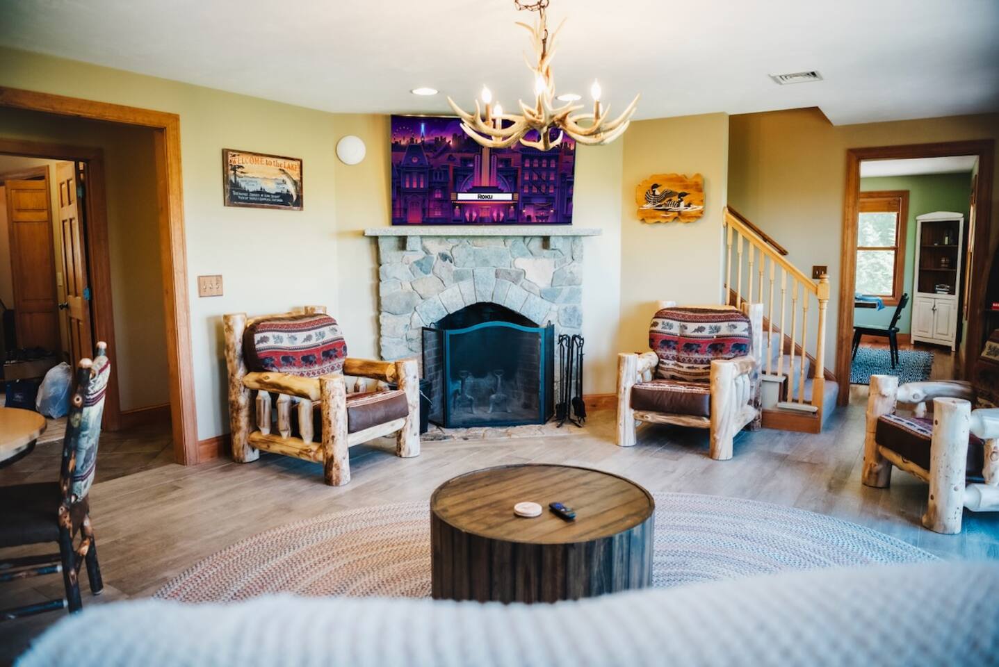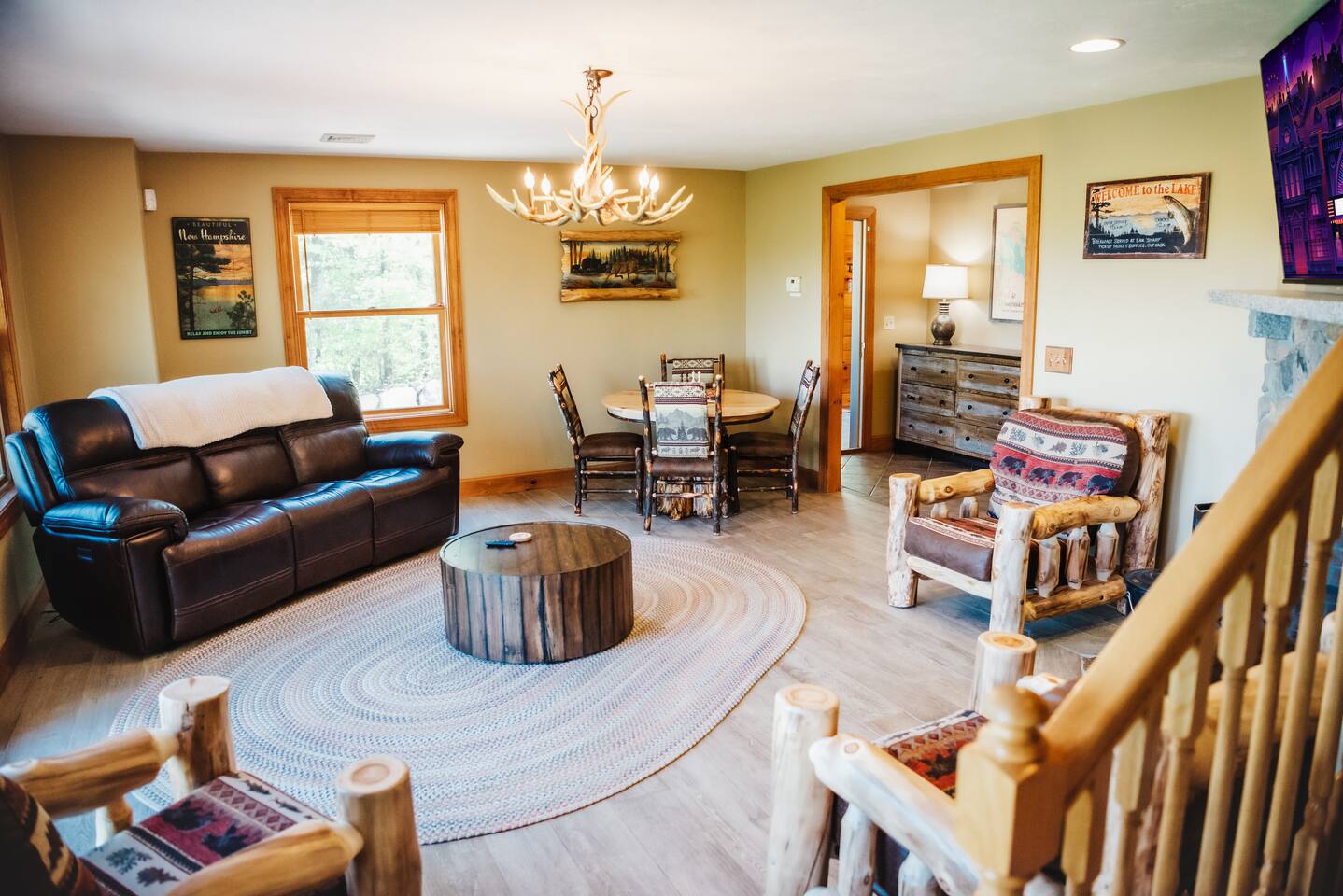 Whether you’re planning a fall getaway to enjoy the stunning colors of the lakes region, or a winter escape for skiing at Gunstock, this picturesque retreat is perfect for large groups to spread out in comfort. Perched high atop Gunstock Acres, our home offers the ideal setting year-round. With two living rooms, four bedrooms, a spacious yard, a large dining area, and breathtaking views, it’s a wonderful place for the whole group to relax, recharge, and explore the beauty of every season.