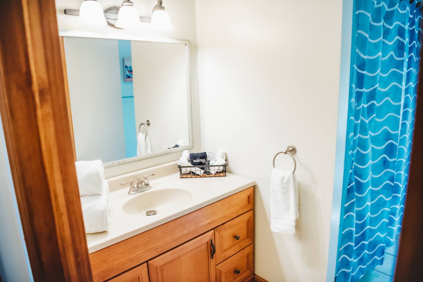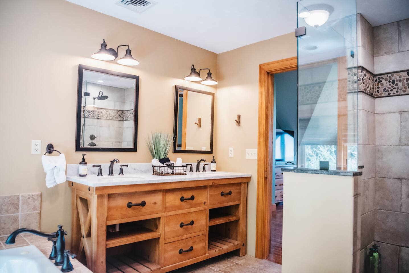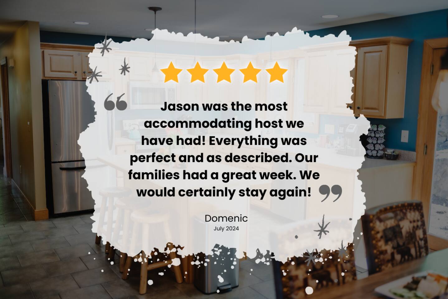 KEY FEATURES: ☀ 4 Bedrooms; 2 kings, 1 queen, a single/double bunk, 2 singles ☀ 3.5 Bathrooms; 1 ensuite w/ jacuzzi tub + shower, 1 bath/shower combo, 1 walk-in shower ☀ Fully-equipped kitchen w/ 3-seater island ☀ Spacious dining room for 10, additional seating at kitchen table for 6 ☀ 2 Spacious living rooms w/ large Smart TVs enabled w/ Hulu, Netflix + Premium cable ☀ Super fast WiFi ☀ Balcony + patio w/ stunning views of lake + mountains ☀ Outdoor dining area + BBQ grill ☀ Private location on a large plot ☀ Dog-friendly ✮ 5 Min Drive to Ellacoya State Park ✮ 7 Min Drive to Gunstock Mountain Resort ✮ 7 Min Drive to Lake Winnipesaukee ✮ 10 Min Drive to Bank of NH Pavillion ✮ 16 Min Drive to Funspot ✮ 16 Min Drive to Weirs Beach Here Are A Few Kind Words From Our Past Guests: “Spectacular! Jason your home far exceeded our expectations! From the stocked kitchen to the layout of the house. My whole family thanks you for the serenity your home provided too all of us. We all left with a smile on our faces. Awesome visit and looking forward to returning!” - Michael "This house is breathtaking, clean & cozy with breathtaking views. The kitchen has the most I've seen in any Airbnb. From plenty of plates, right down to ziplock bags, aluminum foil, cling wrap and any utensil you need. There was even a canister full of fresh coffee! Jason made us feel like we were family or friends staying at his place." - Kaitlyn “Jason was quick to respond to any inquiries we had and his home was perfect!” - Fran “I have stayed in many Airbnb places but none better than Jason's.” - David “Jason was an awesome host and I can’t wait to return!” - Jamie ☆☆ BEDROOMS ☆☆ This spacious home offers four large, cozy bedrooms. There are three bedrooms upstairs on the third floor and one family suite on the lower level. The primary bedroom has a stunning room with high ceilings and wood flooring. The large windows allow in natural light during the day and the comfortable recliners in a sitting area near the window create a beautiful quiet place to enjoy your morning coffee overlooking the treetops, mountains, and Lake Winnipesaukee. The other two upper-level bedrooms also offer lovely views of the surrounding landscape and a cozy mountain lodge aesthetic with solid wood bed frames, large windows, and plush carpeting. One bedroom has a queen-sized bed and the other a twin-over-full bunk bed. On the lower level, there is a family suite that comfortably sleeps four, making it the perfect place for a group of kids or a couple with children. ☆☆ BATHROOMS ☆☆ The primary bedroom ensuite bathroom is bright and spacious, featuring a jacuzzi tub, a beautifully tiled walk-in shower, and a stylish double vanity with two mirrors. The other full bathroom upstairs caters to the remaining two bedrooms and offers a combination bathtub and shower. A third full bathroom caters to the first-floor bedroom suite. This stylish bathroom has a walk-in shower, attractive wood paneling, and a single vanity with bright lighting. Finally, there is a half bathroom on the main level that caters to the kitchen and two living rooms in the heart of the home. The bathrooms are stocked with fresh towels, shampoo, conditioner, body wash, and soap for your convenience. ☆☆ KITCHEN, LOUNGES & DINING ☆☆ This serene home features beautiful and spacious areas for friends and family to come together and enjoy some peaceful downtime during your well-earned vacation to Gilford and the Lakes Region. The large fully-stocked kitchen on the main floor is ideal for a group getaway and gives you everything you need to prepare delicious meals. Stainless steel appliances and a large fridge are fitted into an open-plan layout with a kitchen island and coffee station that adds to the convenience of the space. The dining room features stylish lighting and a large table that seats ten, with direct access to the kitchen which has a second table for six. From there, french doors lead outside into the beautifully-landscaped yard. The kitchen island and outdoor dining table provide other options for enjoying your meals. Two elegant living rooms are placed across two levels of this beautiful home, each with a large TV and unique style, making it easy for your whole group to spread out. The lower-floor lounge is a great movie room with its reclining sofas and massive HDTV. The main floor is home to another living area, forming the heart of the home and oozing a mountain lodge charm, with a stone fireplace, antler chandelier, and beautiful wooden furniture. Relax, watch TV, read, or just spend quality time with your friends and family! ☆☆ OUTSIDE SPACE ☆☆ Granite Vista is the perfect four-season home where you can take in unique surroundings any time of the year. The spacious and private plot makes this home the perfect venue for families and has the bonus of being dog-friendly so you can bring your furry friend along. The home’s second-floor balcony creates a peaceful place to enjoy the surroundings throughout the day, with direct access from the main living room. The backyard patio has outdoor dining furniture and is a special place to light up the grill and enjoy delicious meals with a view. A sliding door from the lower-level living room gives direct access to this outdoor space. ☆☆ DRIVEWAY AND VEHICLES PERMITTED ☆☆ Due to the unique nature of our property's long, steep driveway, guests are prohibited from accessing the premises with trailers, vehicles equipped with lift gates, or low-clearance vehicles. Unfortunately, there is nowhere in our driveway, on the property, or on the street that you would be able to park a boat or a trailer carrying another vehicle. Please plan accordingly! ☆☆ PHOTO DISCLOSURE ☆☆ All food and flowers in the photos are for staging purposes (but are locally available at Hannaford and Shaw's in Gilford, NH - 10-15 min away) ★☆ Book Today + Let Us Take Ca