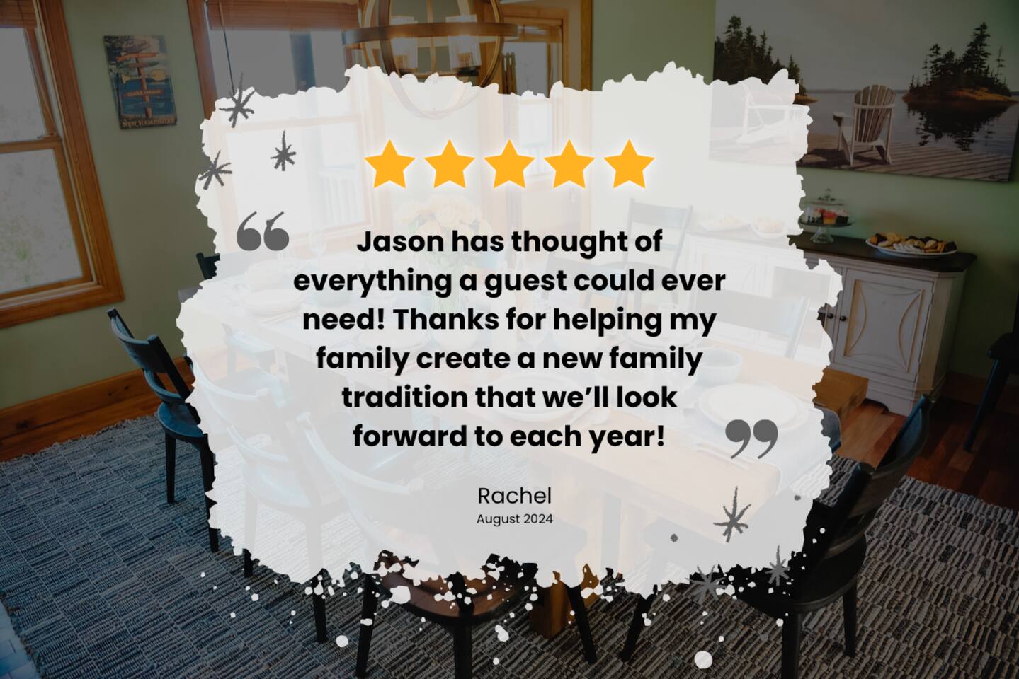 Granite Vista is the perfect four-season home, with great insulation and heating for the winter, and central A/C for the summer. Year-Round Driveway Restrictions: Due to the unique nature of our property's long, steep driveway, guests are prohibited from accessing the premises with trailers, vehicles equipped with lift gates, or low-clearance vehicles. This restriction is in place to ensure the safety of our guests and to prevent potential damage to both the vehicles and the driveway. We respect your privacy! There are no interior cameras. We do have a doorbell camera at each exterior door for your safety and for the security of our home. Quiet hours are from 8pm-8am and we ask that you take all conversations inside after 8pm because neighbors will (and have) complained. We have a noise monitoring device outside, under the deck. Our noise monitoring device only measures the sound level, and will not record private conversations. Please do not tamper with these or any safety devices - it is a violation of house rules. We are super easy going and flexible, but we are serious about this. If you tamper with any safety devices on our property, you will be asked to leave, and we will not issue a refund for any portion of your stay. Thank you. By booking Granite Vista, you are agreeing to these House Rules, acknowledging and accepting responsibility for adhering to these driveway restrictions during your stay. Failure to comply may result in additional fees or termination of the reservation without refund. State of New Hampshire Meals & Rentals Tax Operator's License No. 103159.